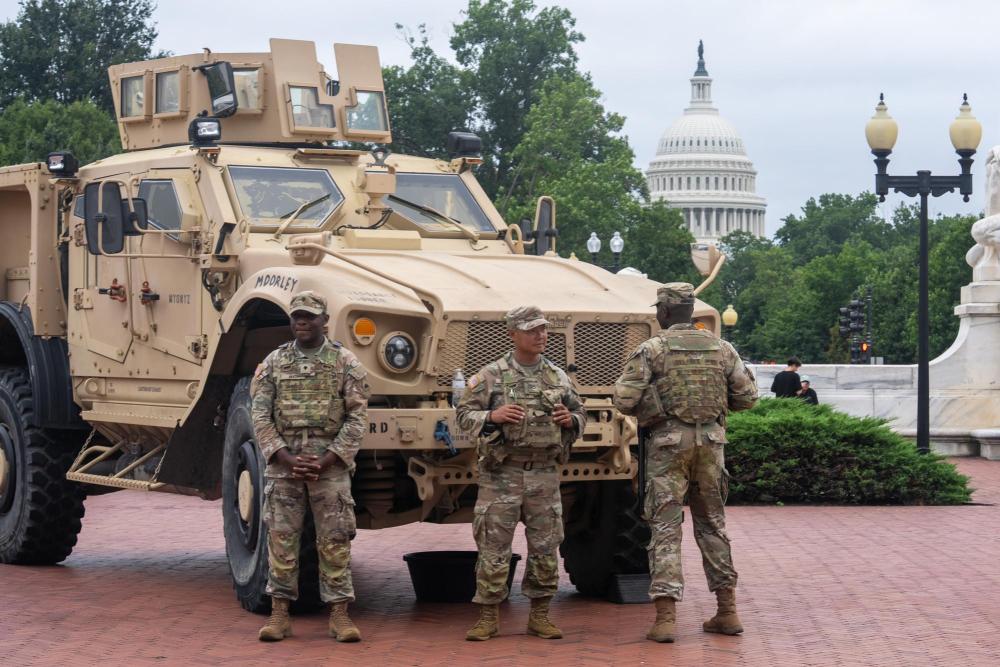 这是8月19日在好意思国王人门华盛顿的斟酌车站外拍摄的国民警卫队成员和车辆。新华社记者胡友松摄